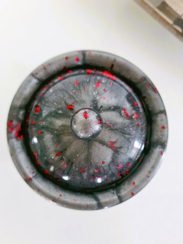 Dose in silber-grau und roten Flocken