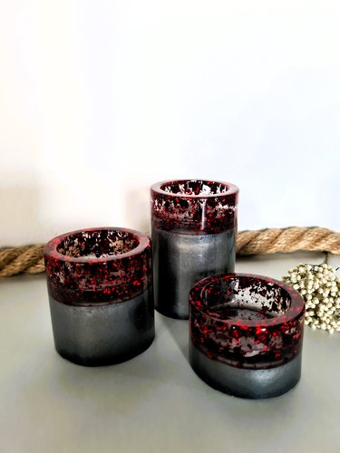 Handgemachte dreiteilige Teelichtform aus Epoxidharz für dein Zuhause oder auch als Geschenkidee! Jedes Stück ist ein Einzelstück, da es von Hand gegossen wird. Daher können die Ergebnisse immer leicht variieren. Gerne kann ich dir deine Lieblingsfarben zusammenstellen. Schreib mir gerne eine Nachricht, wo wir die Einzelheiten besprechen können. Bitte nur mit einem weichen Tuch und Wasser reinigen. Die Produkte werden immer ohne Deko (falls in den Bilder vorhanden) verkauft.